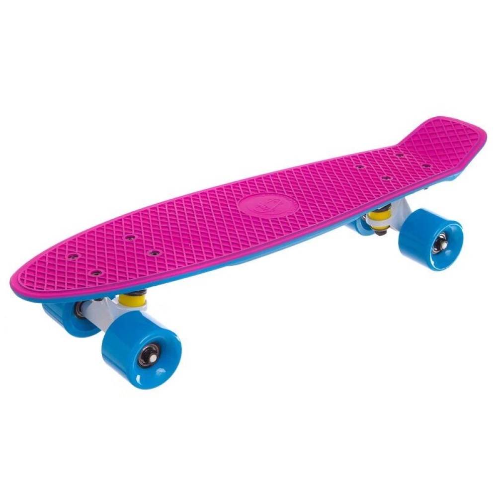 Оригинальный пенни борд Fish Skateboards Pink/Blue 22.5" - Розово/Синий, который не оставит ни одного ребенка равнодушным. Доска в розовом и синем исполнений позволяет делать разного рода финты и манёвры, благодаря крутящимся во все стороны колёсам. Высококачественный пенни борд с шириной 15 сантиметров и длиной 57 сантиметров выдерживает нагрузку до восьмидесяти пяти килограмм. Доска предназначена для детей от четырех до десяти лет, несмотря на это, взрослый человек вполне может приобрести такую и для собственного пользования. Полиуретановые колёса с жесткостью 82 А отлично скользят по тротуарной плитке и другим городским покрытиям.