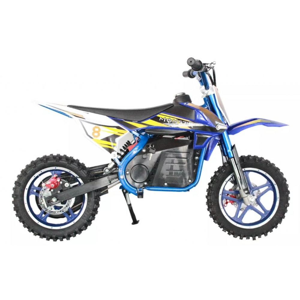 Модель изготовлена из прочного высококачественного материала. Возрастная категория электромотоцикла рассчитана на пользователей от 5 лет. Безопасность для производителя -  приоритетное направление. Модель оснащена дисковыми передними и задними тормозами, шасси с цепным типом передачи. Небольшой вес техники (38кг) позволяет быстро развивать скорость до 33 км/час. Для большей надежности и улучшения скоростных характеристик производитель обеспечил модель цепным приводом. Модель устойчива и маневренна, безопасная для начинающих райдеров. Имеет комфортное сидение анатомически правильной формы для передвижения без ощущения дискомфорта. Для удобства передвижения электромотоцикл имеет регулируемый руль.