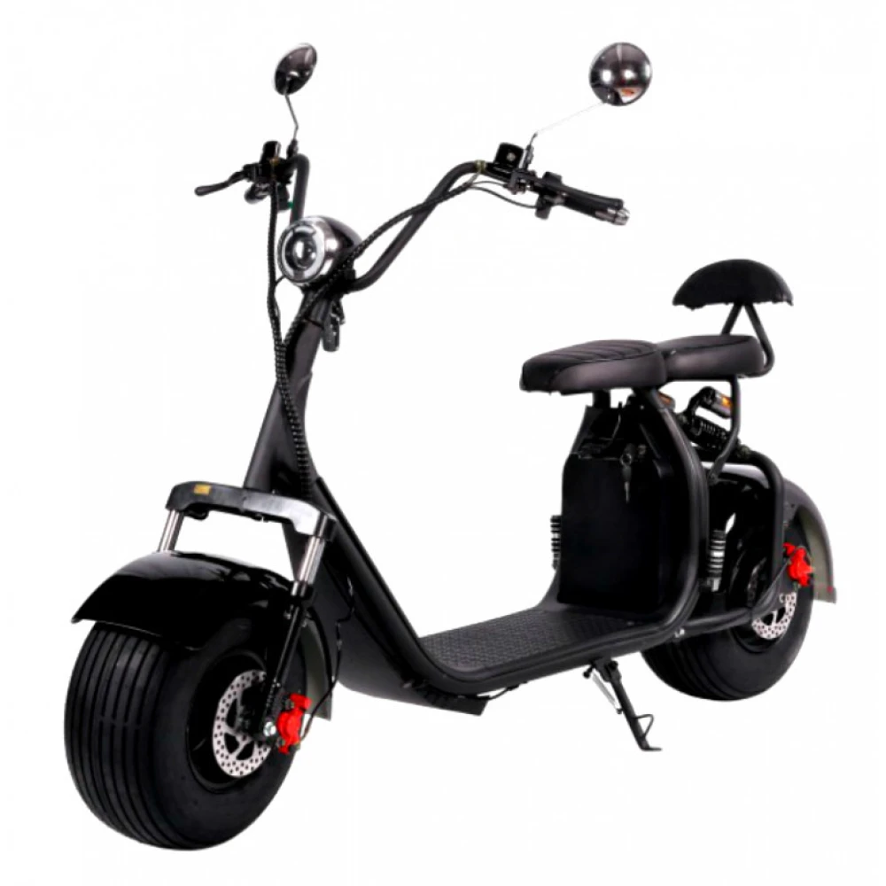 Электроскутер CityCoco Kugoo C2 PRO - усовершенствованный вариант уже полюбившейся и хорошо зарекомендовавшей себя модели. В данной модификации производители предусмотрели более мощный двигатель и аккумулятор. Теперь электроскутер быстро и плавно разгоняется до 45 км/час, легко преодолевает препятствия и подъемы. Одного заряда батареи хватает для преодоления 45-ти километров пути. Этого вполне достаточно для поездок в течение всего дня. Главным преимуществом данной модели является дополнительное сидение для пассажира. Улучшенная амортизация и усиленная подвеска позволяют пользоваться электроскутером вдвоем, что значительно расширяет область его применения. Благодаря широким 8-ми дюймовым колесам, ездить на электроскутере возможно не только по ровным городским улицам, но и по бездорожью. Данная модель оснащена качественной системой освещения. Яркая передняя фара, задние габаритные огни и поворотники повышают безопасность движения в темное время суток и предупреждают других участников движения о совершаемых маневрах. Надежные гидравлические тормоза чутко реагируют на команду райдера и гарантируют быструю остановку электроскутера Kugoo C2 PRO в экстренной ситуации.