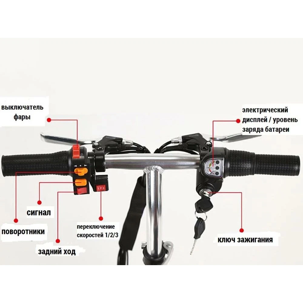 Покупка трицикла мощностью 350 Вт позволит развивать скорость до 25 км/час, преодолевать на одной подзарядке 40 км пути. Наличие жестких амортизаторов при езде сглаживает движение при преодолении препятствий, кочек. 10 дюймовые колеса обеспечивают устойчивость, увеличивают степень безопасности. Электротрицикл изготовлен из облегченного алюминия, представлен складной конструкцией. При необходимости может приобретать минималистичные удобные для транспортировки размеры. Функционал – максимальный. Техника оснащена передней светодиодной фарой, звуковым сигналом, информационным дисплеем, контролирующим скоростные показатели, пробег и заряд батареи. Для оформления заказа выгодно предлагаем сделать телефонный звонок менеджеру интернет-магазина.