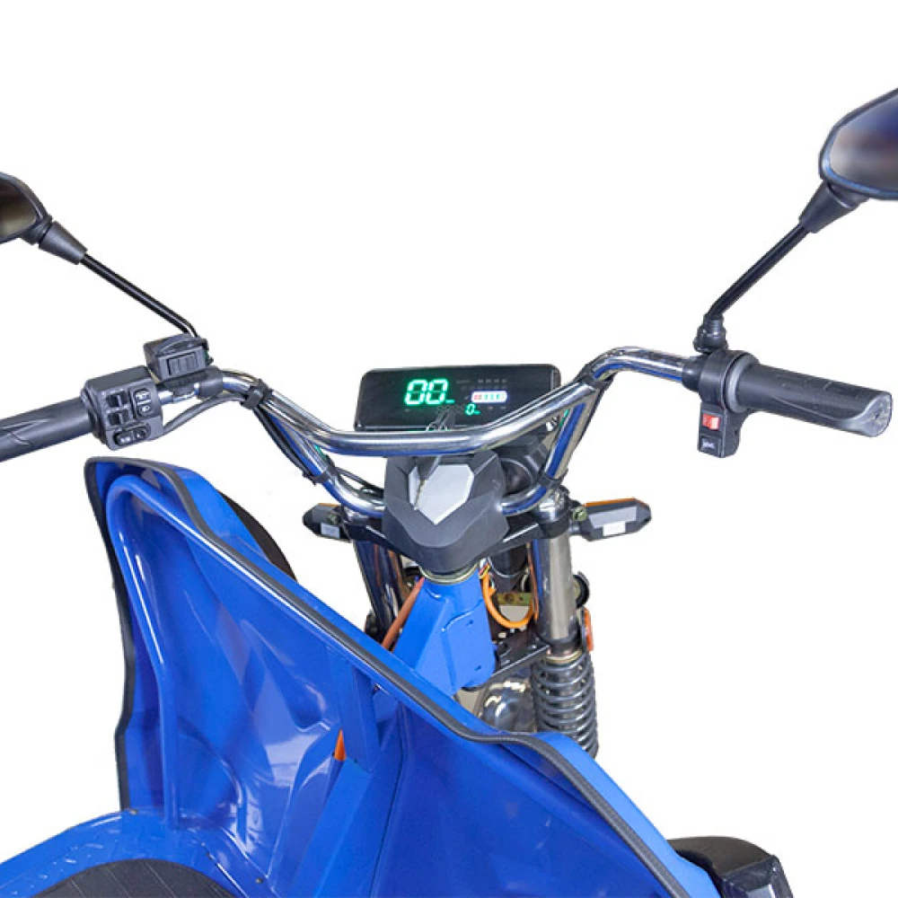 Этот электротрицикл оснащен гидравлическим приводом, что обеспечивает плавное и стабильное управление. Передняя подвеска состоит из усиленных гидравлических амортизаторов, которые обеспечивают комфортную езду даже на неровных поверхностях.