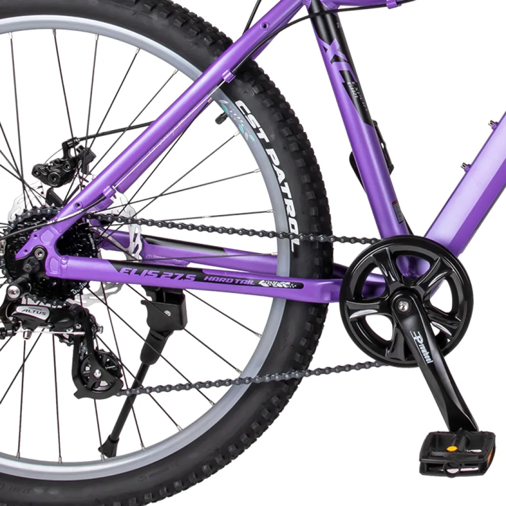 Велосипед Tech Team ELIS 27.5 в фиолетовом цвете с 18-дюймовой стальной рамой рассчитан на подростков и женщин с параметрами роста 165-180 см. Плавный изгиб стальной рамы удобный, комфортный для длительных прогулок на свежем воздухе в пределах города, а также на лесных тропинках. Купить технику по лучшей цене, на личной опыте убедиться в комфорте передвижения предлагает наш интернет-магазин.